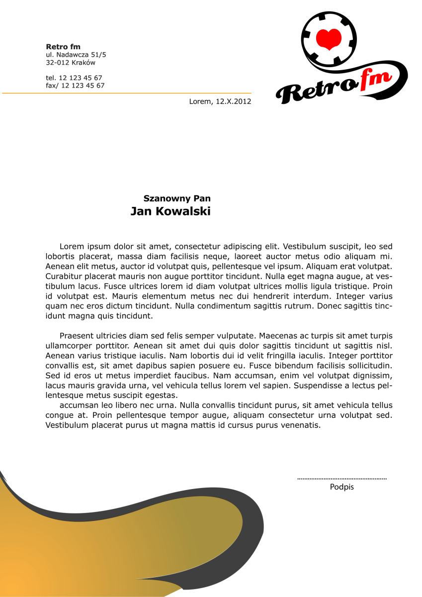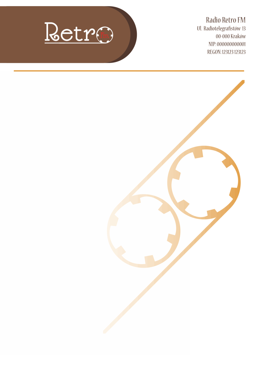 Retro FM to jeden z projektów zaliczeniowych w Szkole Grafiki Komputerowej. Zdaniem tekiego projektu było przygotowanie możliwie szerokiego i spójnego projektu identyfikacji wizualnej dla wylosowanej branży / dziedziny wraz z opracowaniem typografii oraz kolorystyki (czyli absolutnych podstaw).